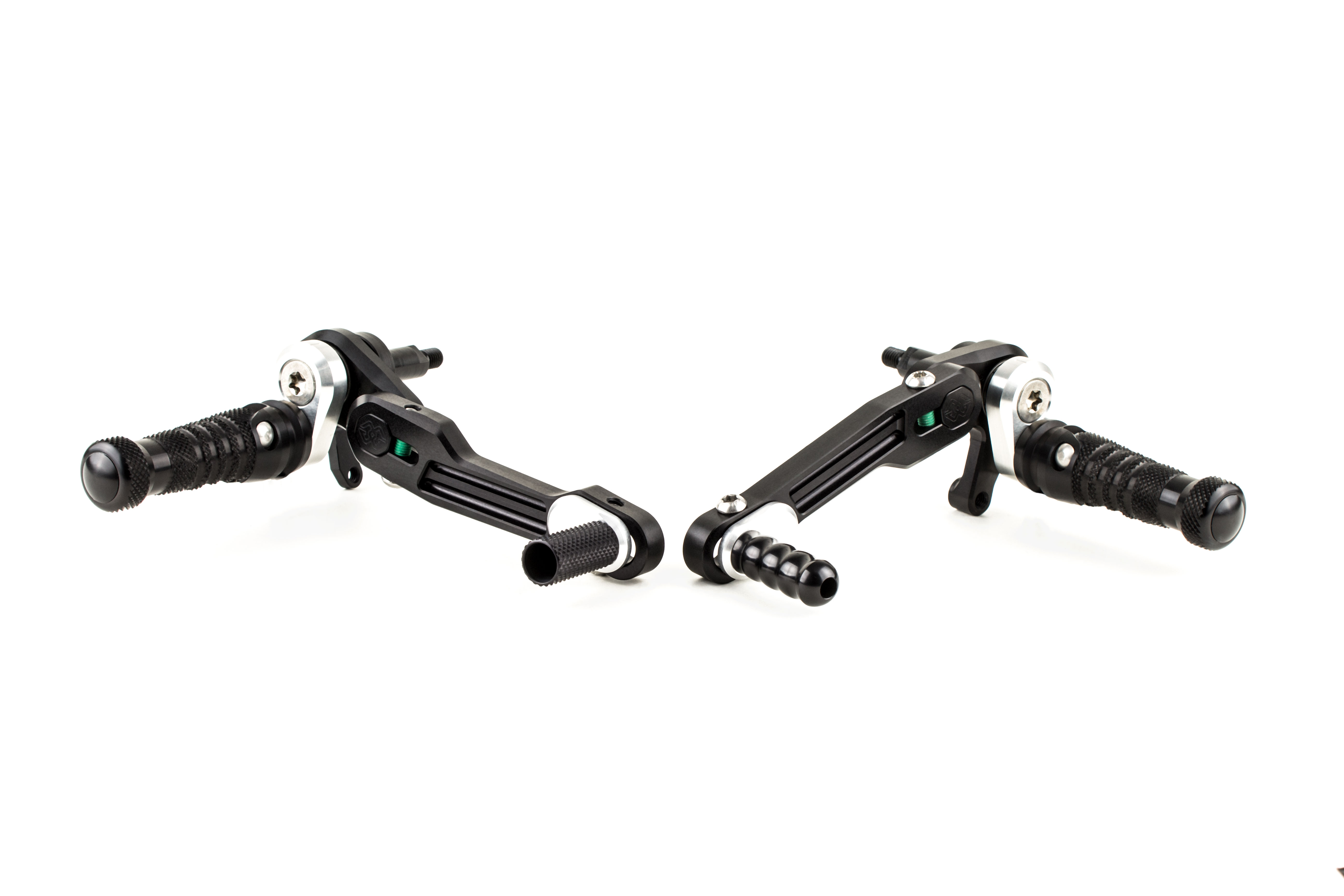 Die Trittstücke an Brems- und Schalthebel sind individuell einstellbar und sorgen für optimale Ergonomie auf deinem Bike. CNC-gefertigte Bauteile garantieren Gewichtsersparnis und höchste Präzision.