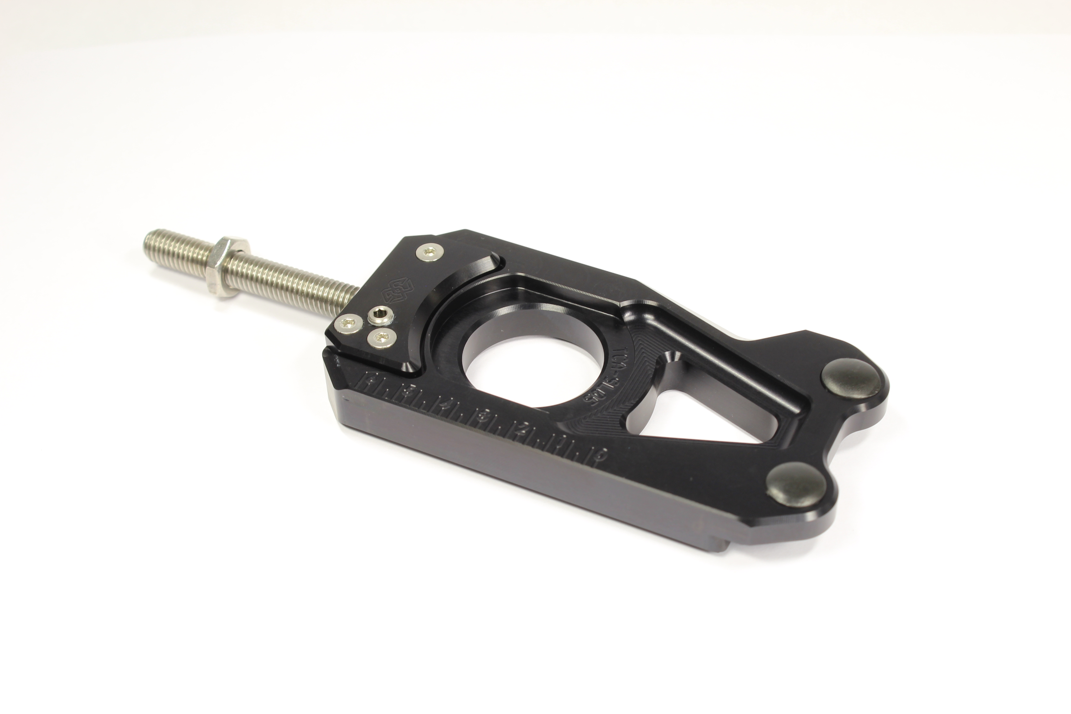 Formvollendetes GILLES.TOOLING Design. Einzigartiger, innovativer Kettenspanner. Hochpräzises einstellen der Kettenspannung mittels Winkelgetriebe. Hohe Ablesegenauigkeit durch Noniusskalierung; durch Aufbringen der Skalierung können Serientoleranzen ausgeglichen werden. Hinterradposition kann in „mm“ abgelesen werden. Hinterradmontage wird erleichtert. Abstützung der Achse gegen Zug- und Druckkräfte. Einfache Montage. Optionale Lifter und Ständerbolzen zum erleichterten aufbocken des Fahrzeuges. Optionale Crash Pads zum Schutz vor Beschädigungen an Achse und Schwinge.